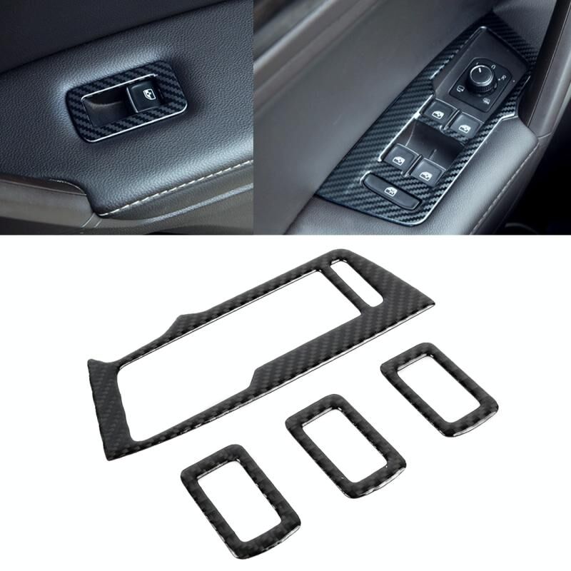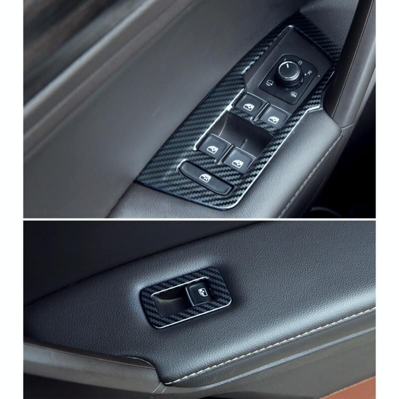 Car Carbon Fiber Window Glass Lifter Panel Decorative Sticker for Volkswagen Tiguan L