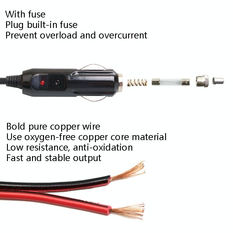 Car Compressor Refrigerator Line 12/24V Semiconductor Refrigerator Power Cord Cigarette Lighter Line, Specification: Without Switch 1m