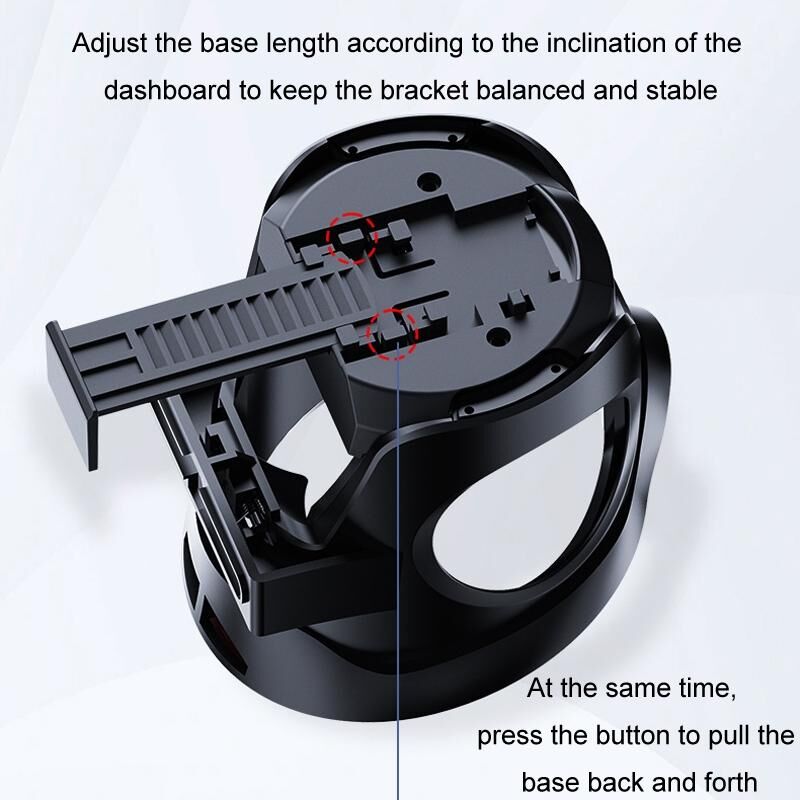 5. Adjust the base length according to the inclination of the dashboard to keep the bracket balanced and stable