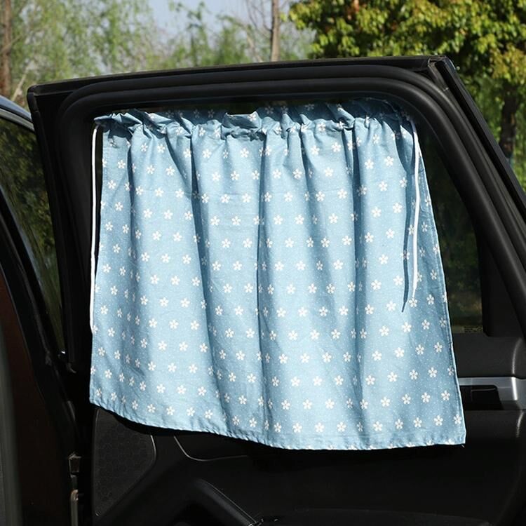 Car Curtains Cotton Car Suction Cup Sunshade Sun Protection Thermal Curtain(Blue Flower)