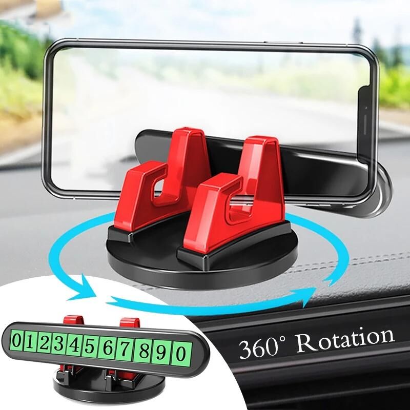 Car Dashboard Automotive Cell Phone Holder Temporary Parking Sign 2 In 1(Black)