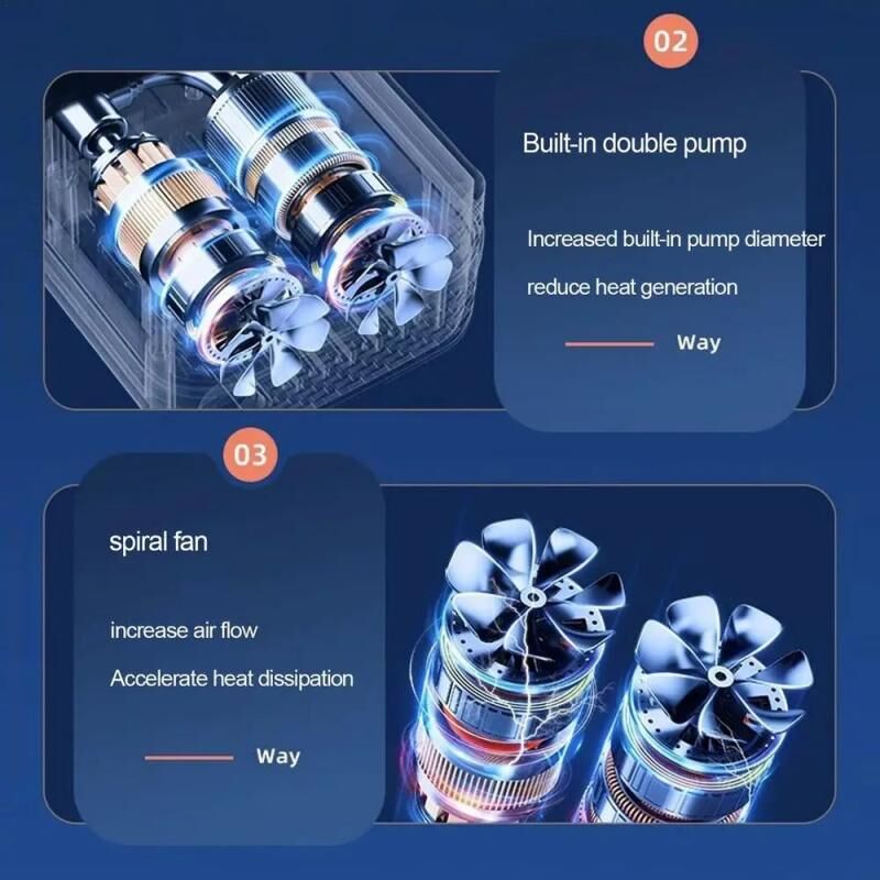 1. Κινητήρας χωρίς ψήκτρες, ισχυρή τεχνολογία ενίσχυσης της ροής αέρα turbo, γρήγορη ταχύτητα φουσκώματος