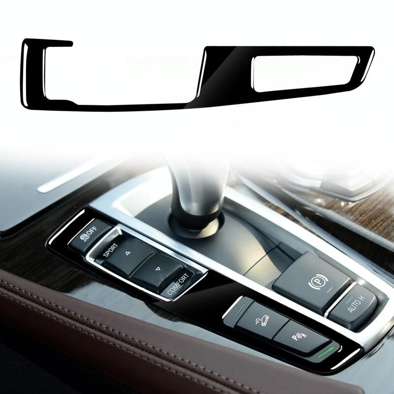 Car Left Drive Gear Panel Double Key Decorative Sticker for BMW Series 5 F10 2011-2017(Black)
