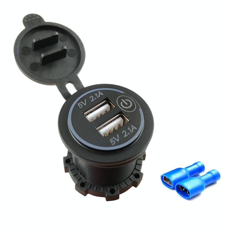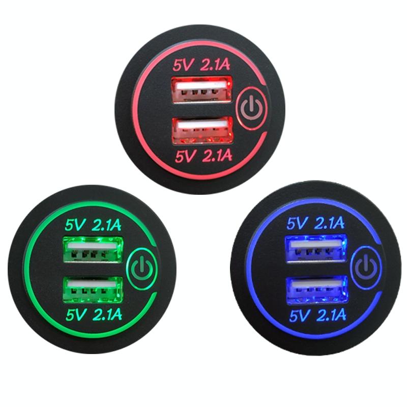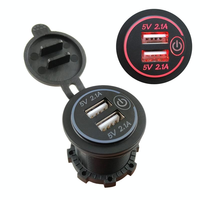 Car Motorcycle Modified Charger Double Aperture 4.2A With Touch Switch USB Car Charge(Red Light)
