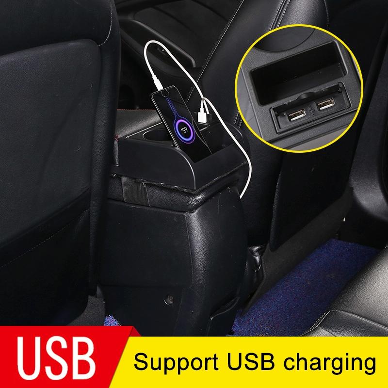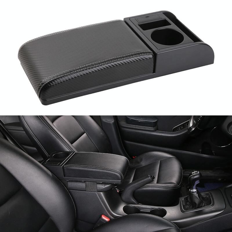 Car Multi-functional Dual USB Armrest Box Booster Pad, Carbon Fiber Leather Straight Type (Black White)