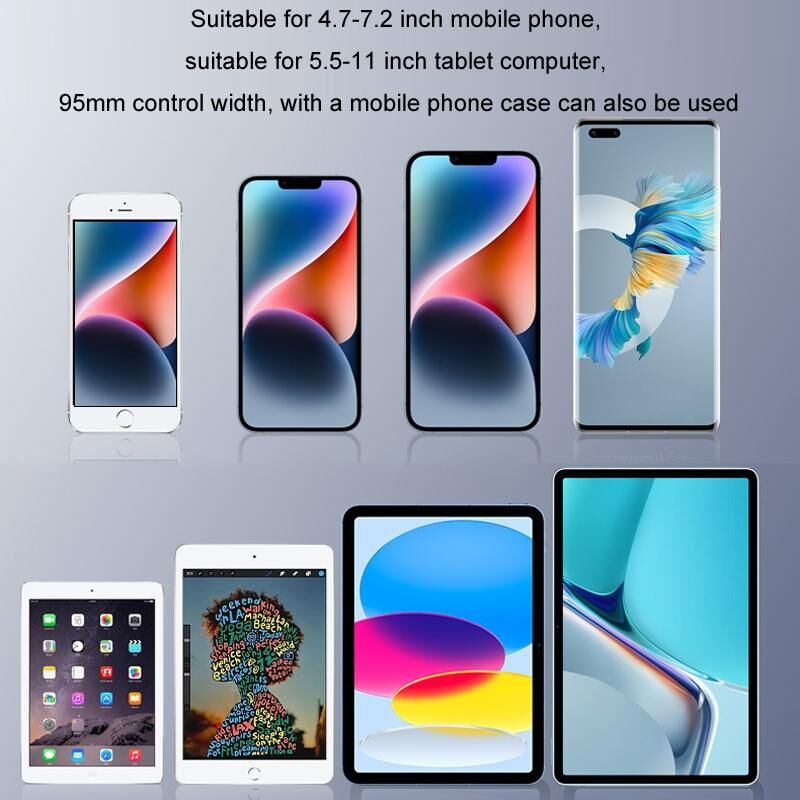 10. Κατάλληλη για κινητά τηλέφωνα 4,7-7,2 ιντσών, κατάλληλη για tablet 5,5-11 ιντσών, ρυθμιζόμενο πλάτος 95mm, μπορεί επίσης να χρησιμοποιηθεί με θήκη κινητού τηλεφώνου