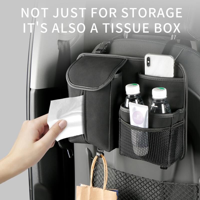 Car Seat Back Hanging Bag Sheepskin Leather Storage Bag With Hook(Brown)