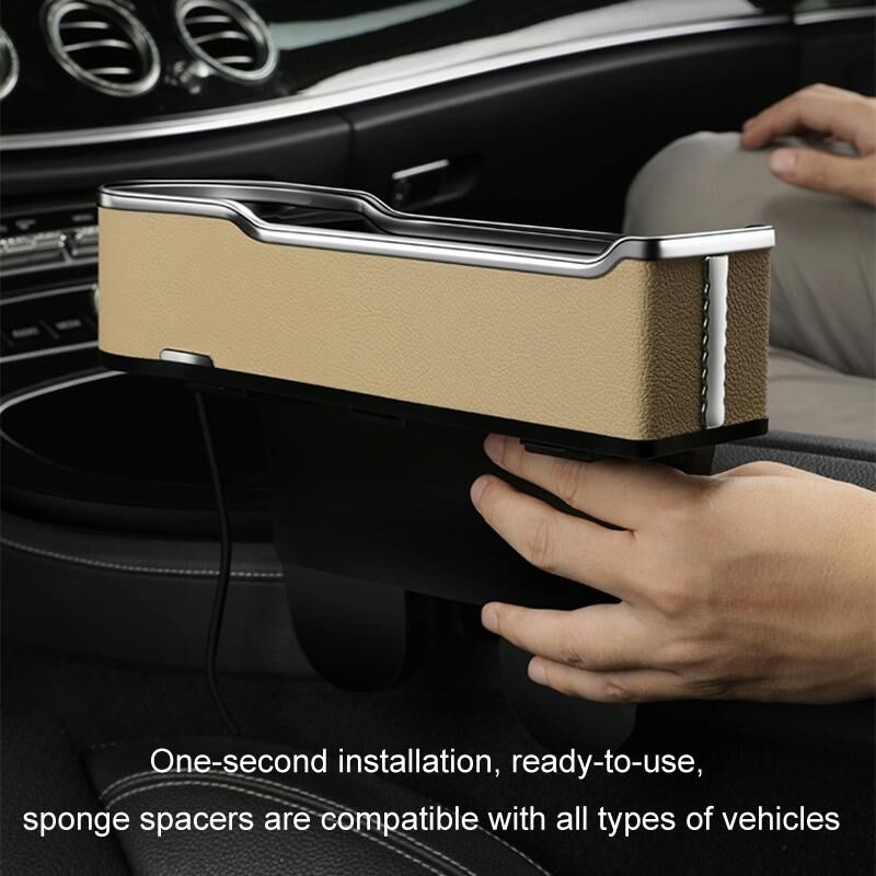Πολυλειτουργικό κουτί αποθήκευσης καθίσματος αυτοκινήτου Πολυλειτουργικός φορτιστής κινητού τηλεφώνου USB, Χρώμα: Τυποποιημένο μπεζ