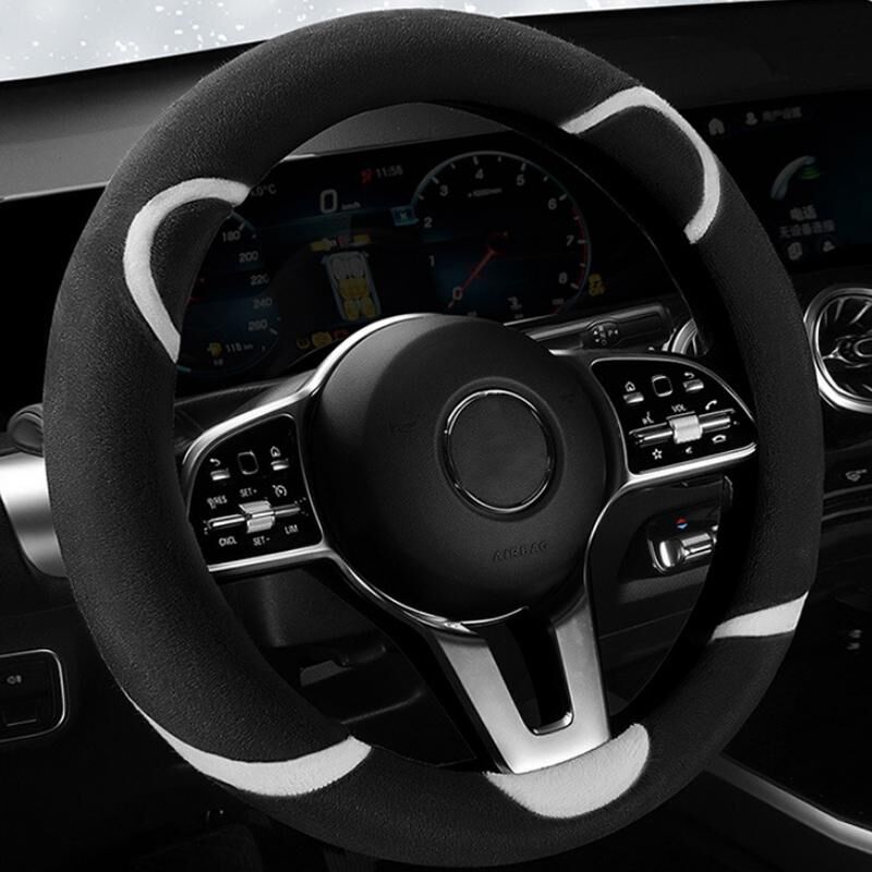 Αυτοκίνητο τιμόνι Cartoon Short Fluff Handle Cover, Μέγεθος: 38cm (Μαύρο στρογγυλό)