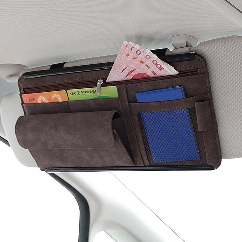 Car Sun Viso Sheepskin Leather Storage Bag(Brown)