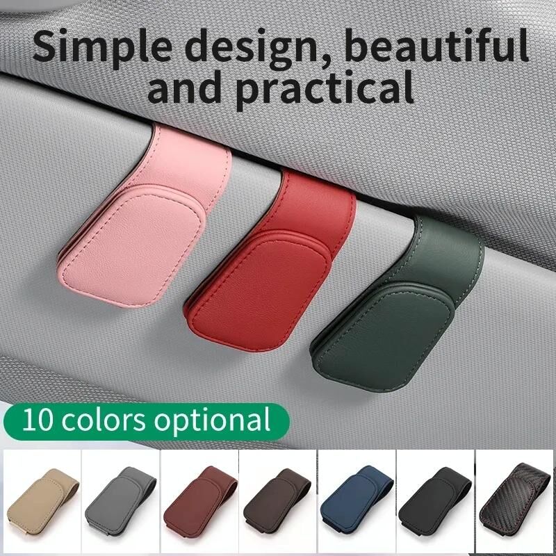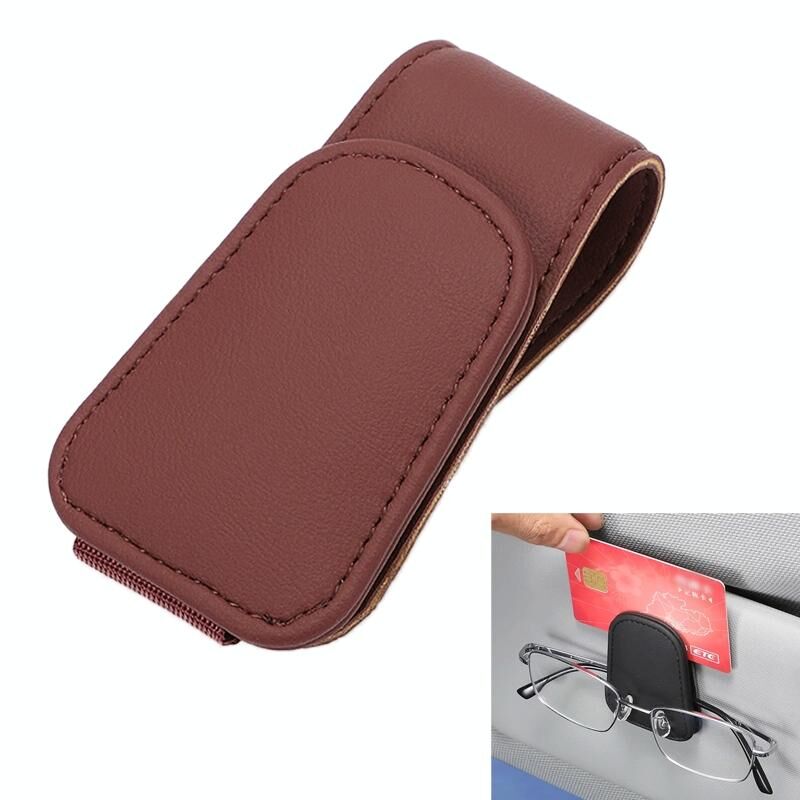 Car Sun Visor Glasses Holder Multifunctional Card Clip Storage Rack(Wine Red)