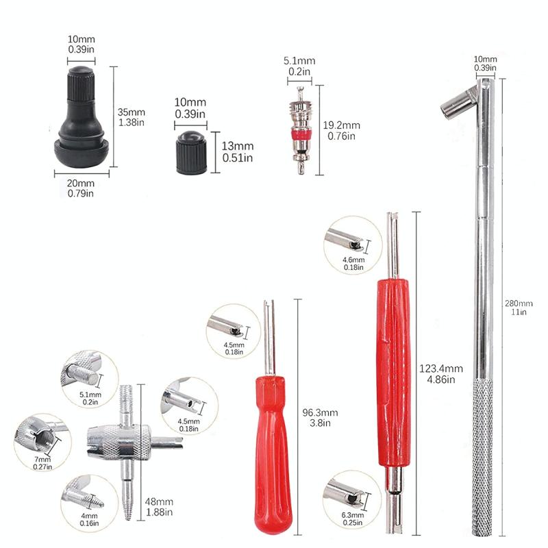 4. Αφαιρετήρας πυρήνα βαλβίδας ελαστικού μονής ή διπλής κεφαλής: για γρήγορη αφαίρεση ή εγκατάσταση βαλβίδων ελαστικών. Συχνά είναι απαραίτητο να ξεβιδώσετε τον πυρήνα της βαλβίδας κατά την αερίωση ή την αποαέρωση του ελαστικού, οπότε χρειάζεστε το εργαλείο αφαίρεσης βαλβίδας ελαστικού.