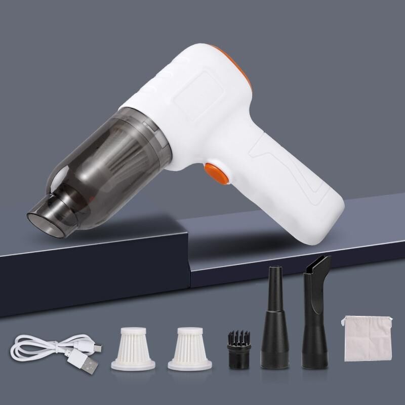 Car Vacuum Cleaner Large Suction Power Wireless Pump Inflatable Blower Handheld Small Vacuum Cleaner, Style: Brush 200W+2 Filters+Storage Bag (White)