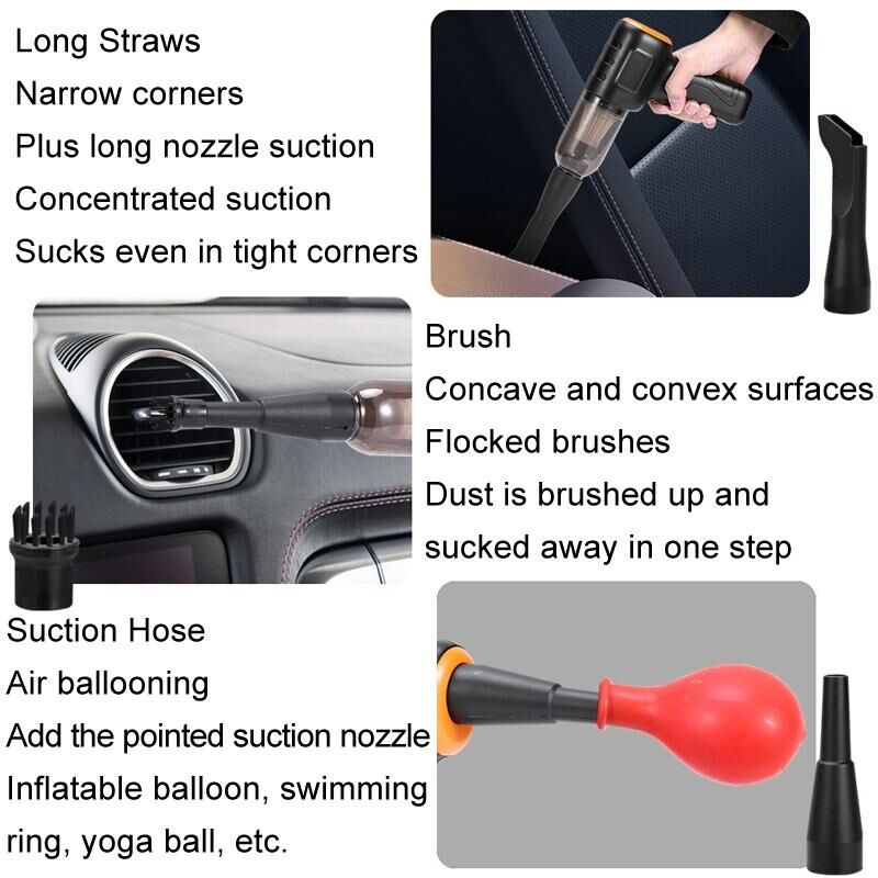 1. Set vacuuming/inflating/pumping/blowing in one, car/home/outdoor multi-purpose