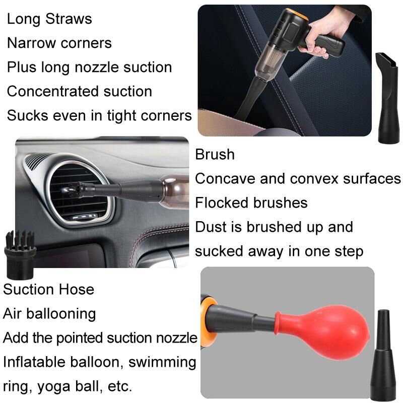 1. Set vacuuming/inflating/pumping/blowing in one, car/home/outdoor multi-purpose