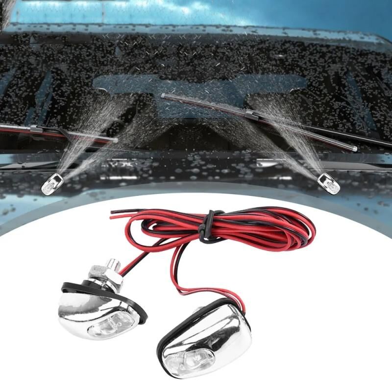 1. Windshield washer nozzle with LED light, selected ABS plastic shell, matching sealing ring and screws, waterproof and durable, easy installation