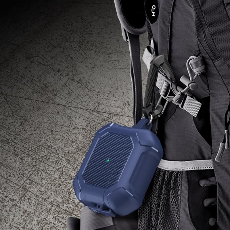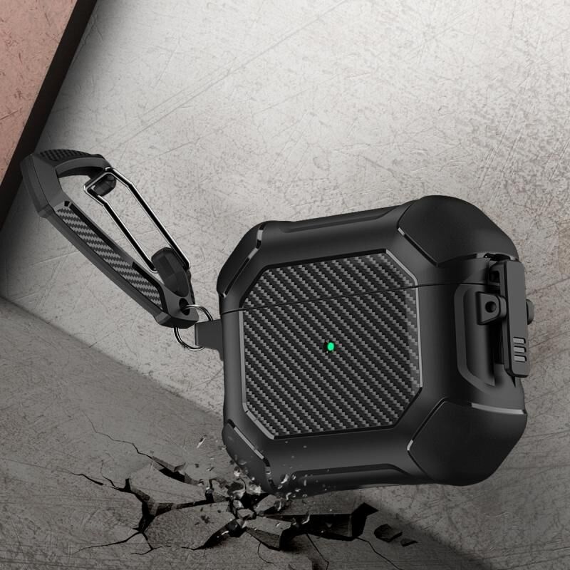 Θήκη Προστασίας Ακουστικών AirPods 3 από TPU+PC με Κλείδωμα Ασφαλείας & Καραμπίνερ, Σχέδιο Carbon Brazing (Μωβ)