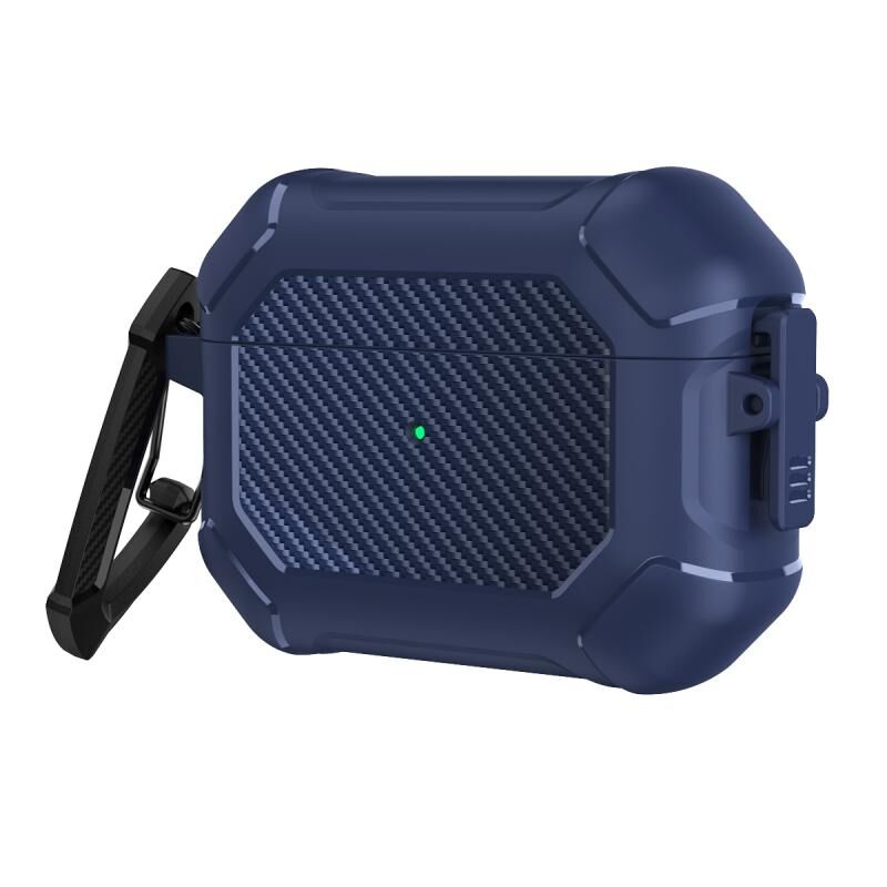 Θήκη Προστασίας Ακουστικών AirPods Pro με Κλείδωμα Ασφαλείας & Καραμπίνερ, Κατασκευασμένη από Ανθρακονήματα και TPU+PC (Μπλε)