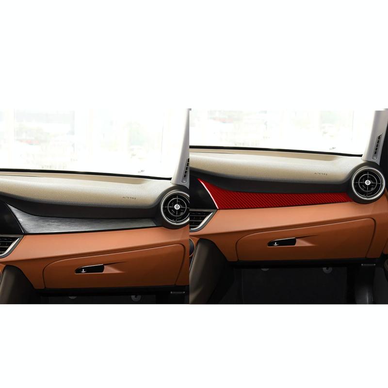 Carbon Fiber Car Dashboard Strip Decorative Sticker for Alfa Romeo Giulia 2017-2019,Left Drive (Red)