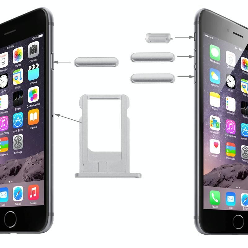 Card Tray & Volume Control Key & Screen Lock Key & Mute Switch Vibrator Key Kit for iPhone 6(Silver)