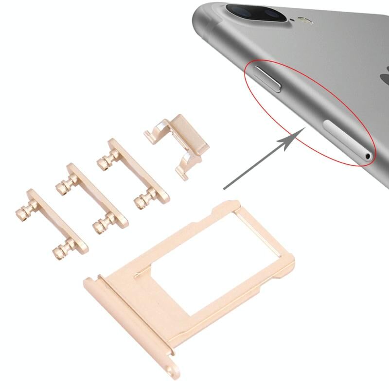 Card Tray + Volume Control Key + Power Button + Mute Switch Vibrator Key for iPhone 7 Plus(Gold)
