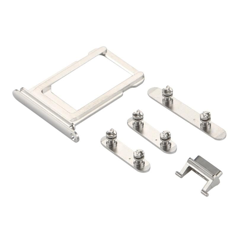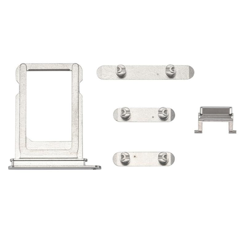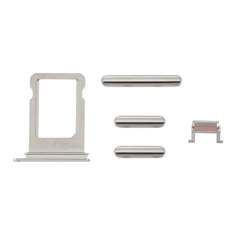 Card Tray + Volume Control Key + Power Button + Mute Switch Vibrator Key for iPhone X(Silver)