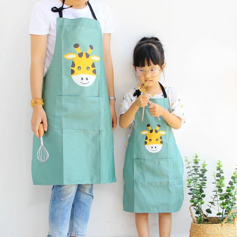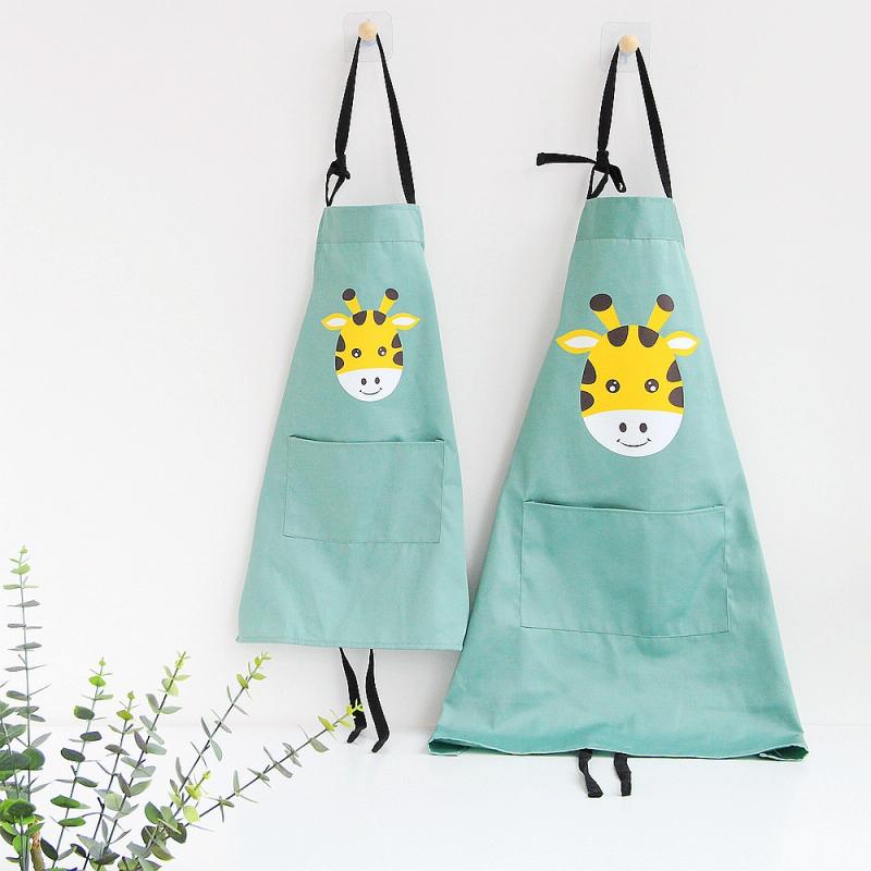 Cartoon Animal Cotton Sleeveless Smock Parent-child Apron, Size:Adult Apron L(Green Giraffe)