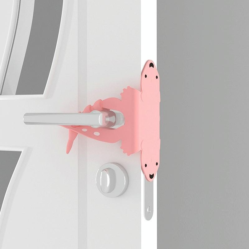 Μαξιλάρι Προστασίας Ασφαλείας για Πόρτα Δωματίου με Αρκουδάκι (Λευκό) - Αθόρυβος Μηχανισμός Κλειδώματος, Αντικραδασμική Προστασία. (ρόζ)