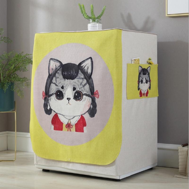 Cartoon Cotton and Linen Drum Roller Washing Machine Dust Cover, Size:83x60x60cm(Cat)