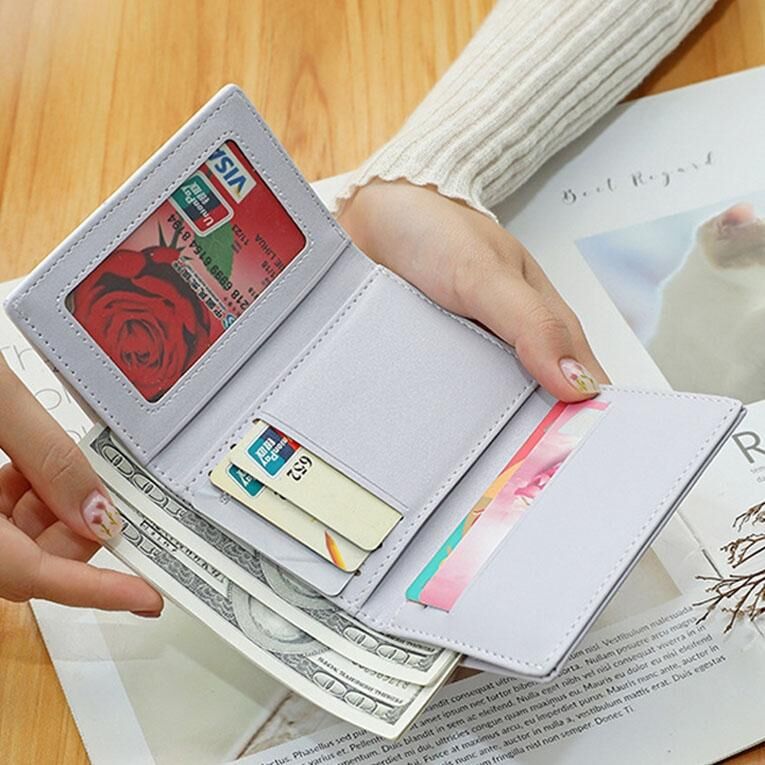 Χαριτωμένο Πορτοφόλι με Εκτύπωση Αρκουδάκι Καρτούν, Μεγάλης Χωρητικότητας, Δίπτυχο με Κούμπωμα (Ροζ)