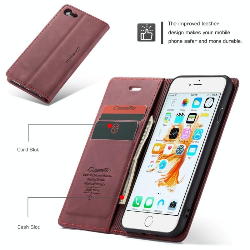 Θήκη CaseMe-013 Πολυλειτουργική Ρετρό Ματ Οριζόντια Δερμάτινη Θήκη Flip για iPhone 6 / 6s, με Θήκη Καρτών & Στήριξη & Πορτοφόλι (Κόκκινο Κρασί) (CaseMe)