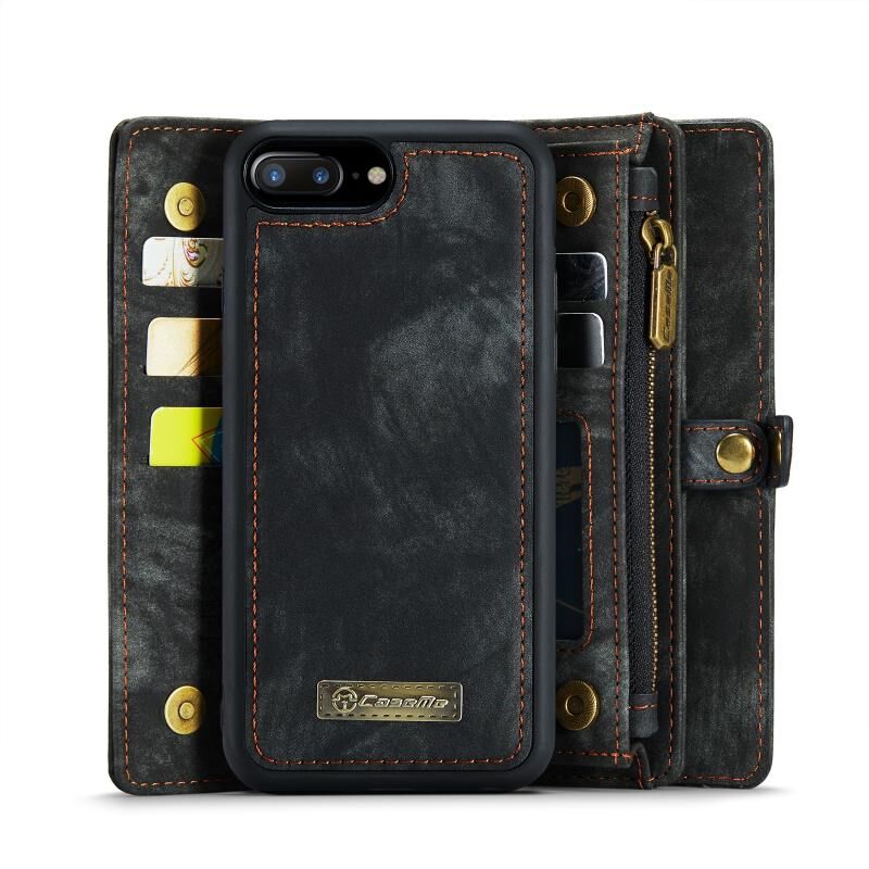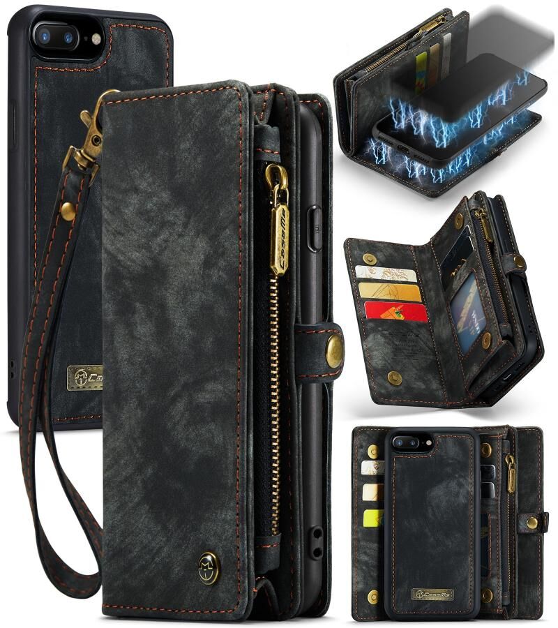 CaseMe για iPhone 8 Plus & 7 Plus Πολυλειτουργικό Δερμάτινο Πορτοφόλι με Αποσπώμενη Μαγνητική Θήκη PC για Προστασία & Θήκη & 11 Θέσεις για Κάρτες & 3 Θέσεις για Χαρτονομίσματα & 1 Πορτοφόλι με Φερμουάρ & 2 Φωτογραφίες & 3 Μαγνητικά Κλιπ (Μαύρο) (CaseMe)