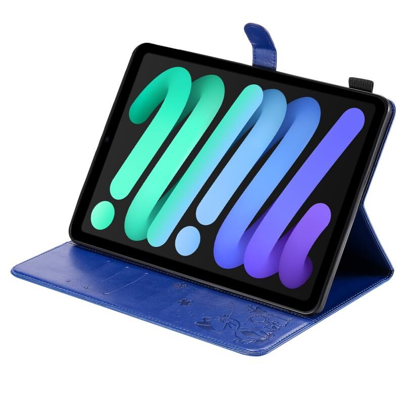 Θήκη Tablet από Δέρμα με Οριζόντιο Άνοιγμα και Σχέδιο με Γάτα και Μέλισσα σε Embossing για iPad mini 6 (Πράσινο)