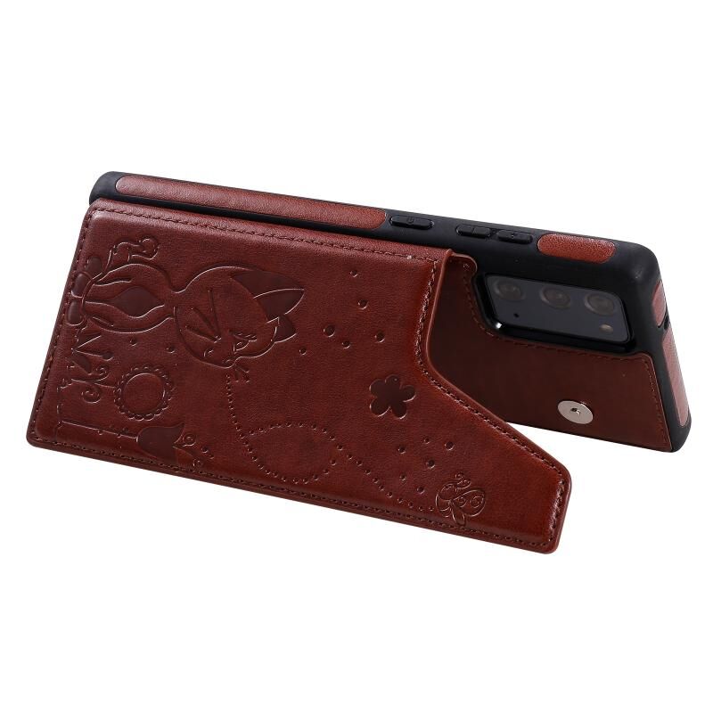 Θήκη προστασίας με ανάγλυφο σχέδιο γάτας και μέλισσας, αντικραδασμική, με θήκες για κάρτες & κορνίζα φωτογραφίας για Samsung Galaxy Note20 (Μπλε)