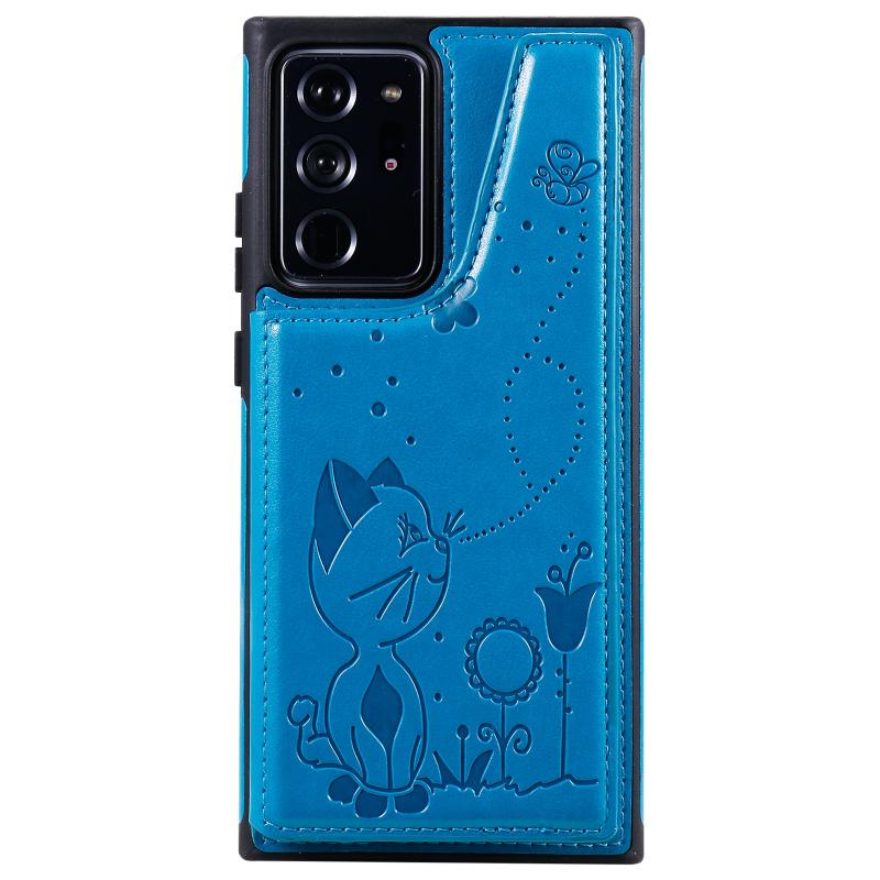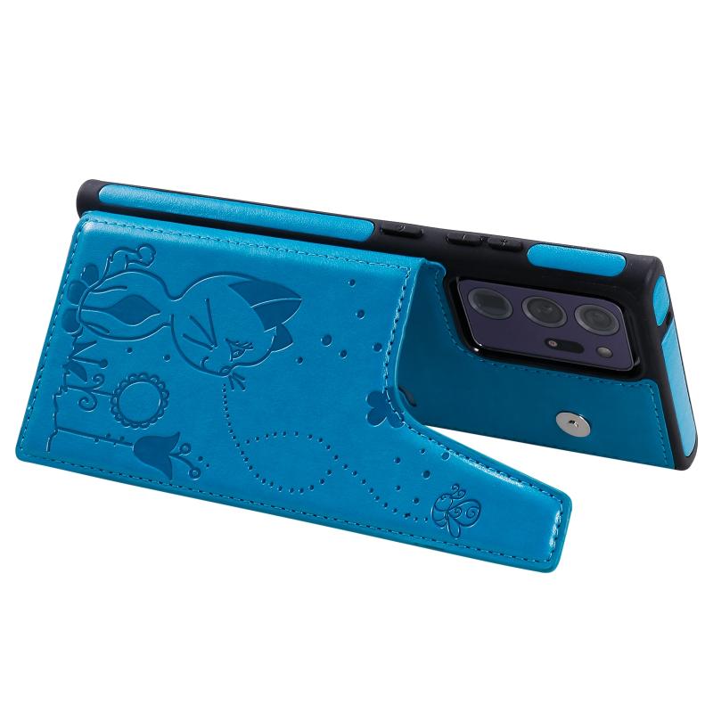 Cat Bee Embossing Pattern Shockproof Protective Case with Card Slots & Photo Frame For Samsung Galaxy Note20 Ultra(Blue)
