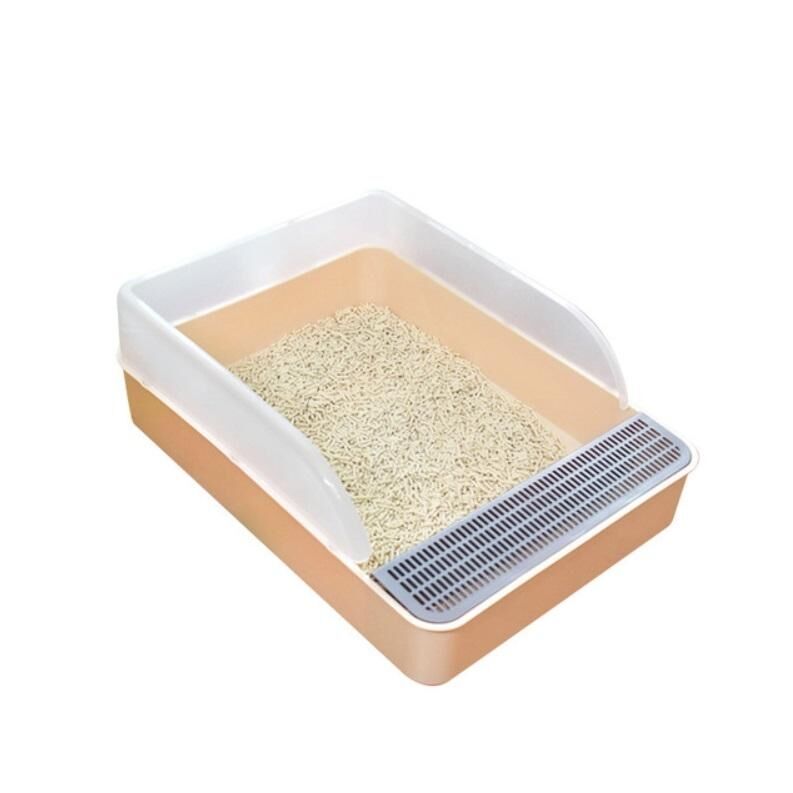 Cat Litter Box Semi-closed Square Feces Basin Pet Toilet, Size:Large Pink
