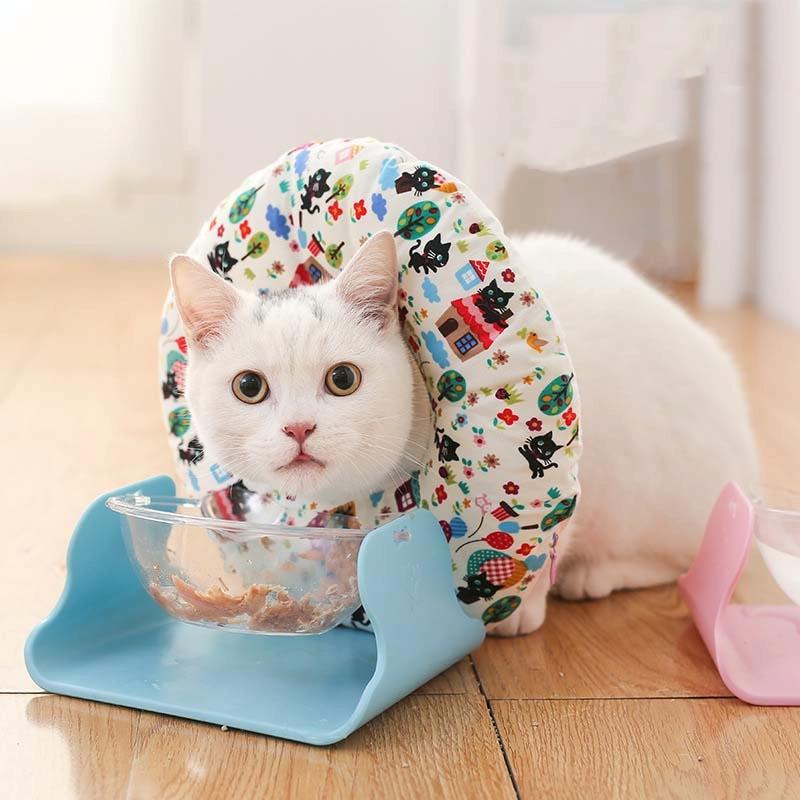 Cat Supplies Detachable Waterproof Anti-Bite Anti-Licking Collar Cat Circle Neck Headgear, Specification: L(Lake Blue Cat)
