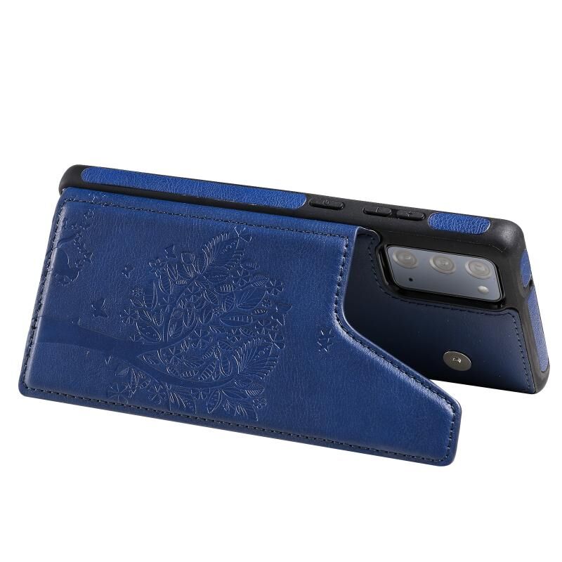 Θήκη προστασίας με ανάγλυφο σχέδιο δέντρου για γάτες, αντικραδασμική, με θήκες για κάρτες & κορνίζα φωτογραφιών & βάση για Samsung Galaxy Note20 (Μωβ)