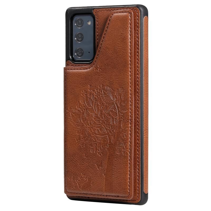 Θήκη προστασίας με ανάγλυφο σχέδιο δέντρου για γάτες, αντικραδασμική, με θήκες για κάρτες & κορνίζα φωτογραφιών & βάση για Samsung Galaxy Note20 (Μωβ)