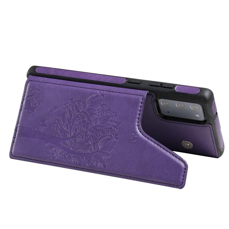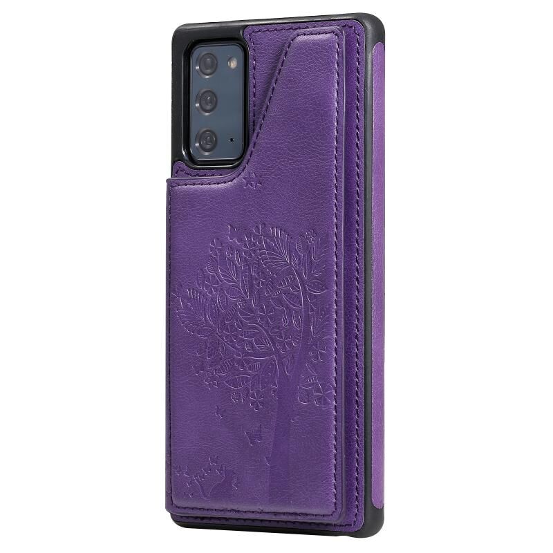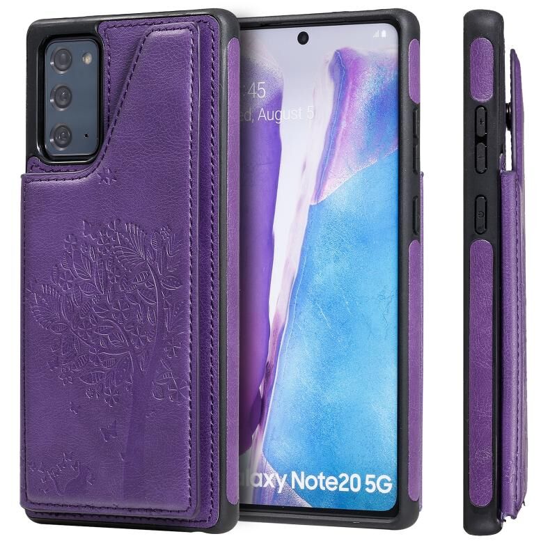 Θήκη προστασίας με ανάγλυφο σχέδιο δέντρου για γάτες, αντικραδασμική, με θήκες για κάρτες & κορνίζα φωτογραφιών & βάση για Samsung Galaxy Note20 (Μωβ)