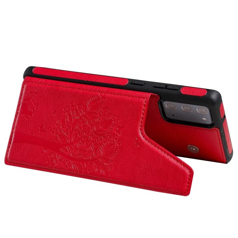 Θήκη προστασίας με ανάγλυφο σχέδιο δέντρου για γάτες, αντικραδασμική, με θήκες για κάρτες & κορνίζα φωτογραφιών & βάση για Samsung Galaxy Note20 (Μωβ)