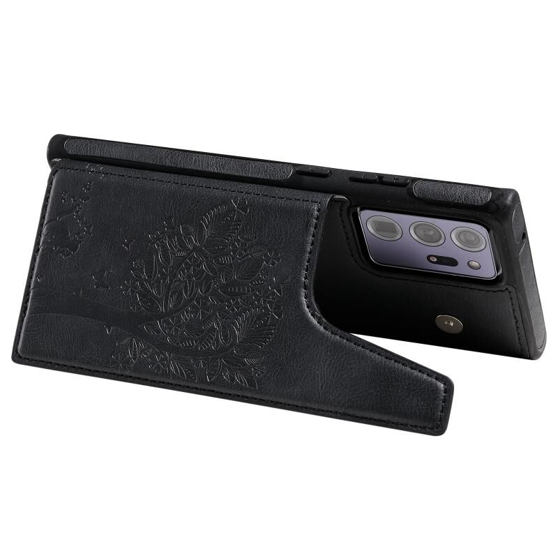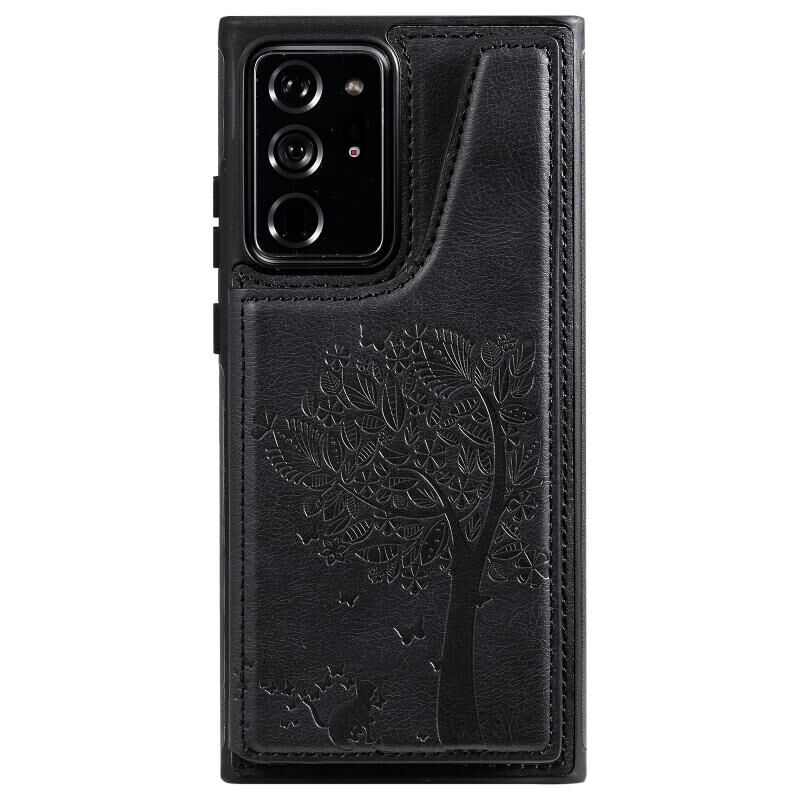 Θήκη προστασίας με ανάγλυφο σχέδιο δέντρου για γάτες, αντικραδασμική, με θήκες για κάρτες & κορνίζα φωτογραφιών & βάση για Samsung Galaxy Note20 Ultra (Μωβ)