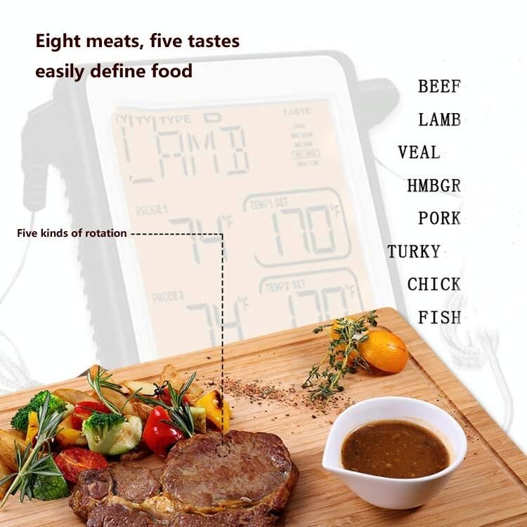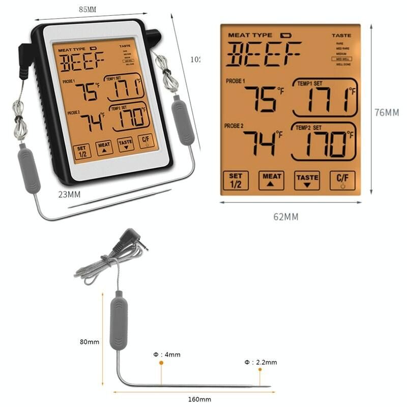 CH-212 Θερμόμετρο κουζίνας διπλού αισθητήρα με έγχρωμη οθόνη Smart Alarm Grill, χρώμα: πορτοκαλί οπίσθιος φωτισμός