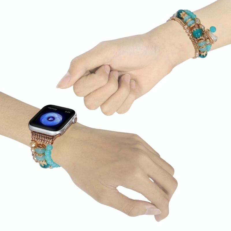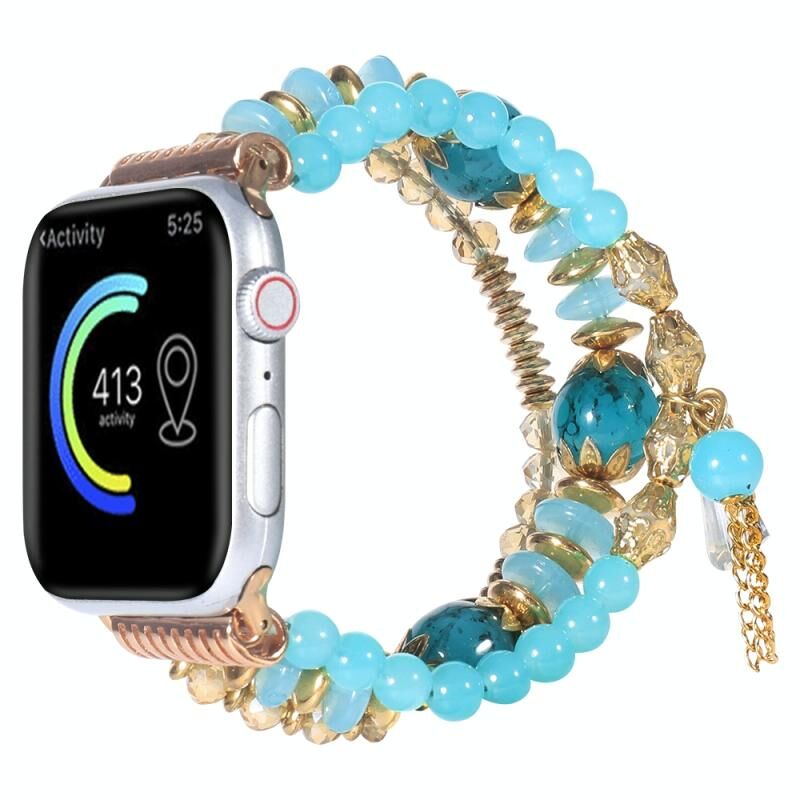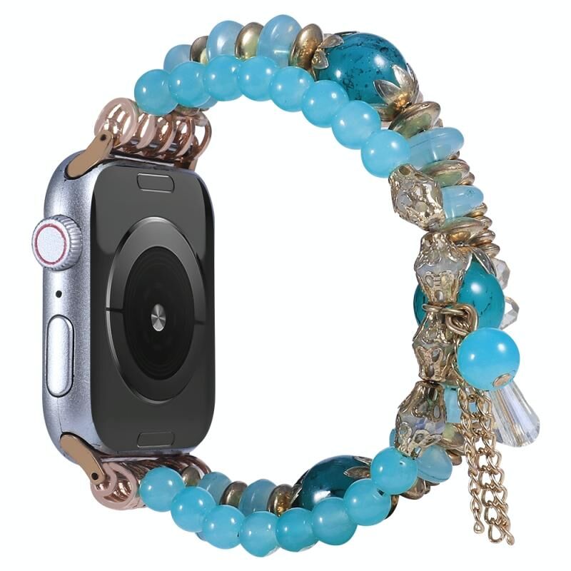 Λουρί για Apple Watch Ultra 49mm & Watch Ultra 2 49mm / Series 9 & 8 & 7 45mm / SE 3 & SE 2 & 6 & SE & 5 & 4 44mm / 3 & 2 & 1 42mm με αλυσίδα και κρεμαστά (Γαλάζια Λίμνης)