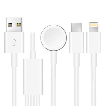 Καλώδιο μαγνητικής φόρτισης 3 σε 1 Type-C για Apple Watch Series & iPhone & Συσκευές με θύρα Type-C, 1.2μ/4ft