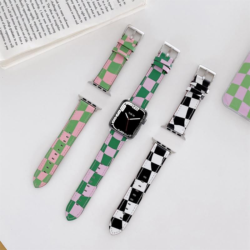 Λουράκι ρολογιού από δέρμα σε σκακιέρα για Apple Watch Series 7 & 6 & SE & 5 & 4 40mm/3 & 2 & 1 38mm (Πράσινο Μωβ)