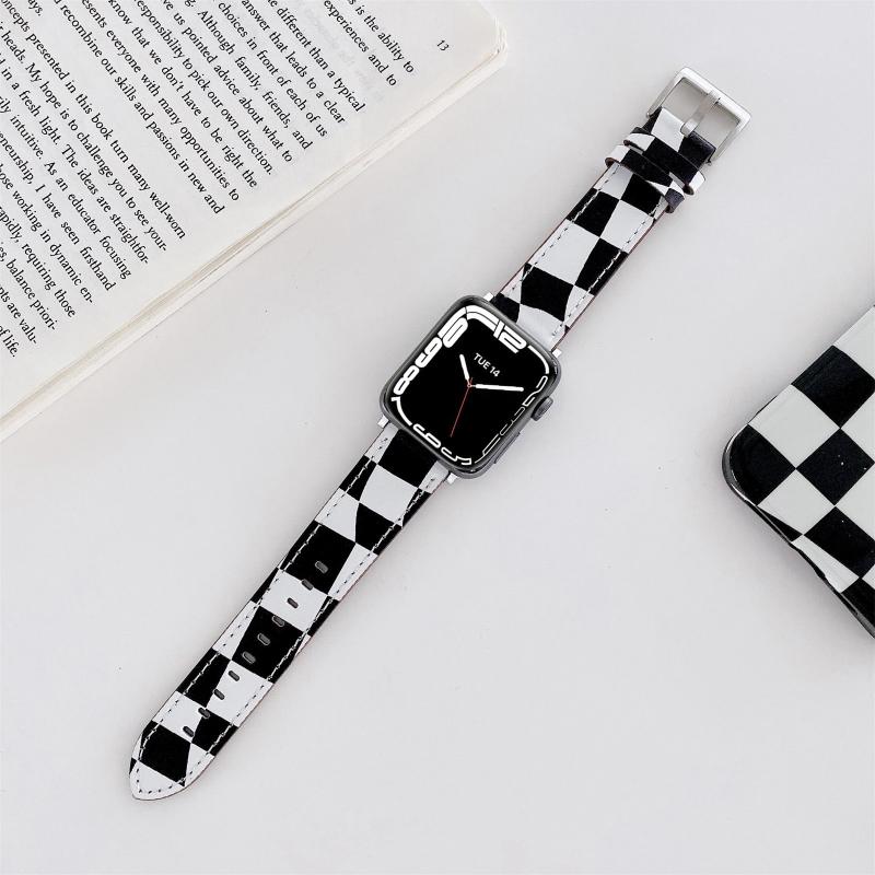 Λουράκι ρολογιού από δέρμα σε σκακιέρα για Apple Watch Series 7 & 6 & SE & 5 & 4 44mm/3 & 2 & 1 42mm (Μαύρο)