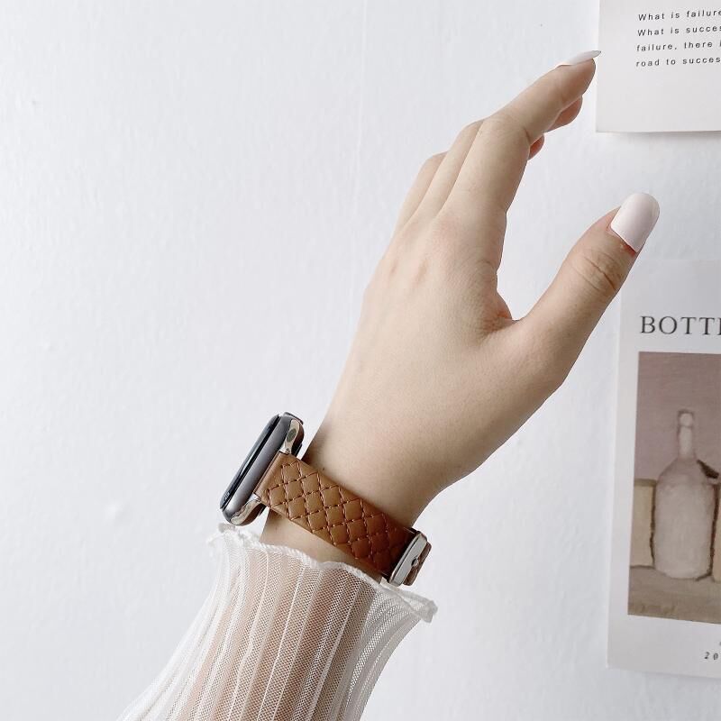 Λουράκι ρολογιού από δέρμα καρό για Apple Watch Series 7 41mm/6&SE&5&4 40mm/3&2&1 38mm (Καφέ)
