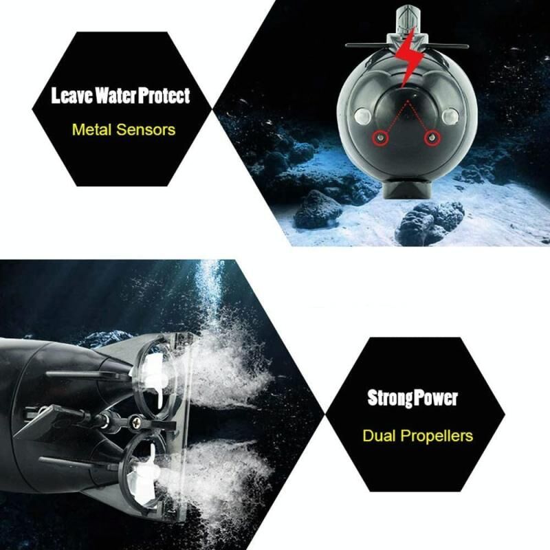 Παιδικό Ηλεκτρικό Υποβρύχιο Μοντέλο 2.4G Έξι-δρομων για Αγόρια, για Παιχνίδι στο Νερό, Σκάφος με Τηλεχειριστήριο, Πυρηνικό Υποβρύχιο (Μαύρο)