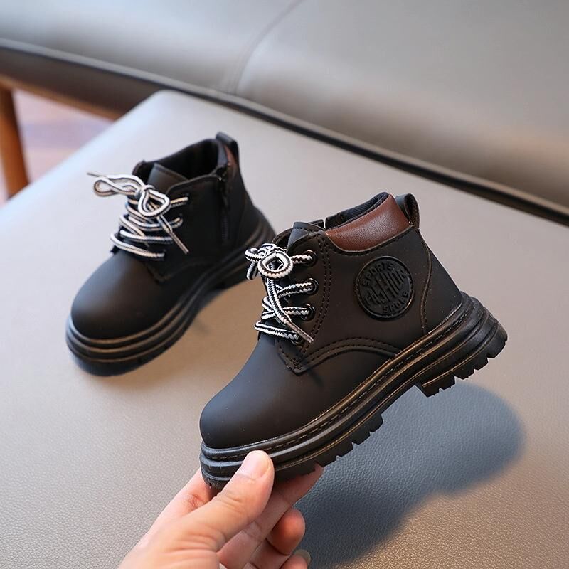 Παιδιά Martin μπότες δερμάτινα παπούτσια παιδιά παπούτσια αγόρια κορίτσια Casual κοντές μπότες, μέγεθος: 28(μαύρο)